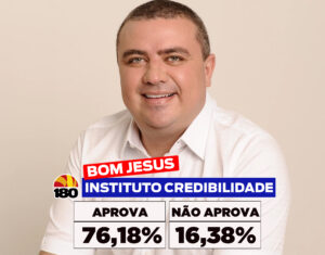 A gestão do prefeito Nestor Elvas registra alta aprovação em Bom Jesus, segundo pesquisa divulgada pelo Portal 180graus nesta rodada. De acordo com o levantamento, 76,18% dos entrevistados aprovam a administração municipal, enquanto 16,38% desaprovam e 7,44% não souberam ou não opinaram.